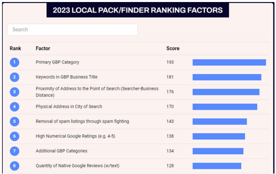 The data above was taken from Whitespark’s 2023 survey of SEO experts.  They asked those experts to rate the factors that they believe most impact the Local Pack rankings.