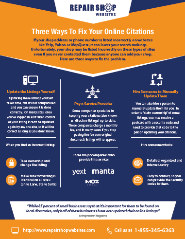 If your auto repair business’s address or phone number is listed incorrectly on websites like Yelp, Yahoo or MapQuest, it can lower your search rankings. Unfortunately, your business may be listed incorrectly on these types of sites even if you never contacted them because anyone can add your business. Click here for three ways to fix the problem.